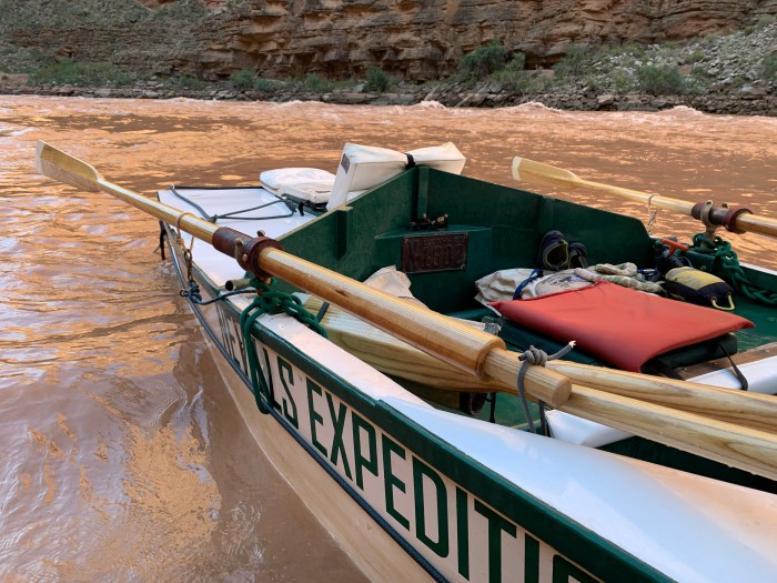 Oars are constructed utilizing solid ash oar-bodies with unique hardwoods laminated on the inboard side to add balance, strength, and flair. This coupling of an ash oar-body with various “cheek” woods allows for elegant combinations of color and character in each oar while maintaining the feel and durability of a solid wooden oar.